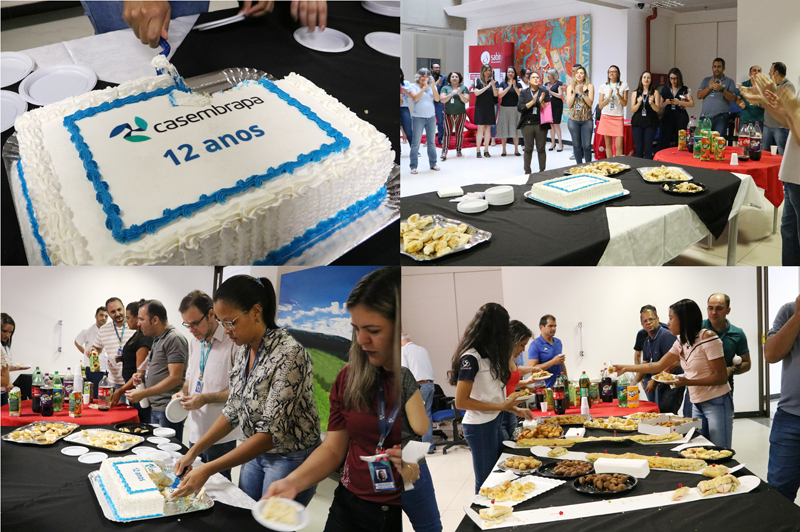 Para finalizar a programação, o público cantou os “parabéns a você” pelos 12 anos da Casembrapa e pôde se deliciar com um bolo feito especialmente para a ocasião. A comemoração teve também uma mesa farta, com salgadinhos, sucos e refrigerantes.