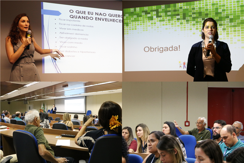Pela manhã, a geriatra Priscilla Mussi fez uma apresentação sobre envelhecimento saudável, abordando questões como a importância de se dormir bem ao longo da vida – até mesmo para prevenir doenças como o mal de Alzheimner –, as mudanças fisiológicas, a importância de se manter a capacidade cognitiva, de se escolher bem o que comer, que hábitos adotar e como se adaptar para ter uma vida mais duradoura e saudável.