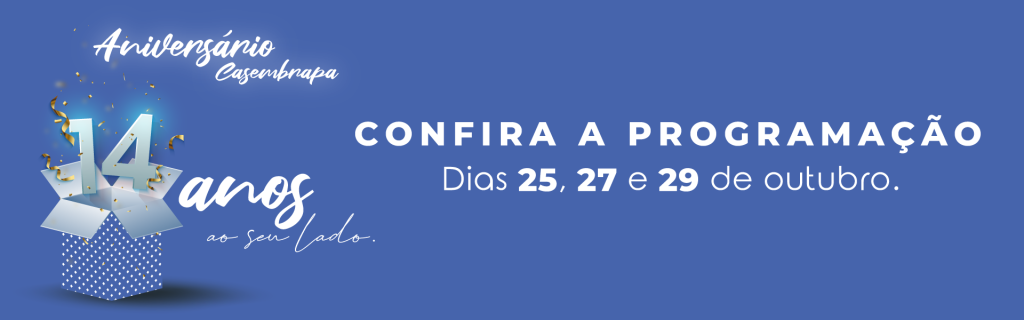 Confira a programação do aniversário da Casembrapa O aniversário de 14 anos da Casembrapa é comemorado no dia 30 de outubro e, por isso, a Casembrapa em parceria com a FAEE e a Oncoclinicas, trará diversas palestras virtuais sobre: alimentação saudável, cuidado com o corpo, saúde e bem-estar, saúde mental em tempos de Coronavírus, além […]