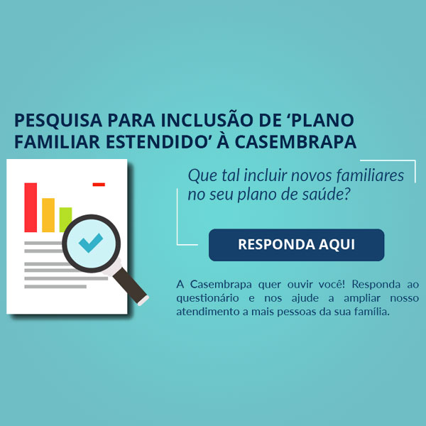 Responda nossa pesquisa sobre inclusão de agregados ao Plano A Embrapa gostaria de saber sobre seu interesse em estender o benefício do plano de saúde (Casembrapa) para mais pessoas próximas a você. Que tal incluir familiares como netos, irmãos, primos e cunhados, entre outros no seu convênio? Para saber mais sobre o assunto, a Casembrapa […]