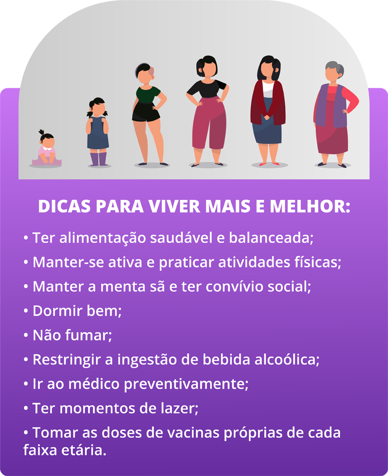 Os avanços da ciência e o conhecimento sobre nossos hábitos têm tornado possível viver por mais tempo e com saúde. Com boas práticas desde cedo é possível viver bem por mais tempo. Aproveitando o mês da mulher, trazemos algumas dicas para que elas possam prolongar a vida sempre com bem-estar.