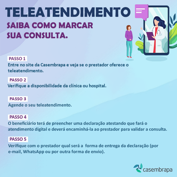 Pensando na sua comodidade, segurança e principalmente, na sua saúde, a Casembrapa disponibiliza a lista atualizada de clínicas e hospitais parceiros que oferecem o serviço de teleatendimento, ou atendimento digital. Essa é uma nova forma de estar perto, cuidando do seu bem estar. Algumas especialidades já estão acessíveis para que você possa realizar consultas sem precisar sair de casa. Todo o procedimento segue as recomendações dos órgãos de fiscalização e a legislação vigente.